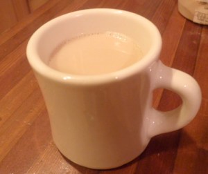 Place all ingredients into a saucepan and heat over a medium flame. Once you start to see steam rising from the pot, lower to a simmer. This is definitely a place to play with spices–I avoid ginger, for example, based on my kids’ preference. It’s important, though, that the cardamon dominates in your ratios. I also think it’s important to use cinnamon sticks instead of ground cinnamon. There’s a more full, rounded taste in the sticks, in my opinion.
