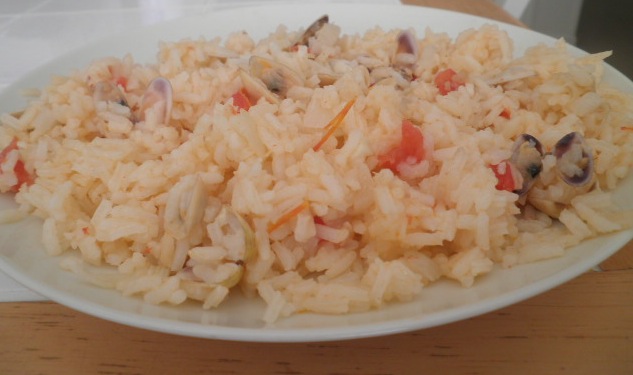 Warning! The only problem I see with this dish is that biting down on a coquina shell could be hazardous to your teeth. When I served this dish up, I made sure to plate it in such a way that the coquinas were visible in the rice. Using the largest coquinas you can find, and the most brilliantly colored, will make it a little easier to see those little critters. Still, I strongly recommend you eat this dish with care.