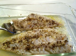 Preheat your oven to 375 degrees. Wash and dry your cod filets. Drizzle about a teaspoon of olive oil in the bottom of a glass 9×12 baking dish and place your filets side by side, touching slightly. Salt your fish to your liking, then cover evenly with the diced garlic and oregano (make sure you crush the dried oregano between your fingers to help release the flavor). Drizzle the remaining olive oil over the top of the fish. Bake for 15-20 minutes, depending on the thickness of the filets.