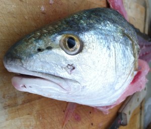 I first mentioned Fish Head Soup over a year ago, when Josh and I were experimenting with coquinas. It’s been a while since we have been at the beach, and even longer since any of us has caught a fish worth keeping. Finally Matthew brought in a nice catch–a Redfish just big enough to keep. I fileted it and blackened it for lunch, and with what was left over made a Josh favorite–Fish Head Soup.