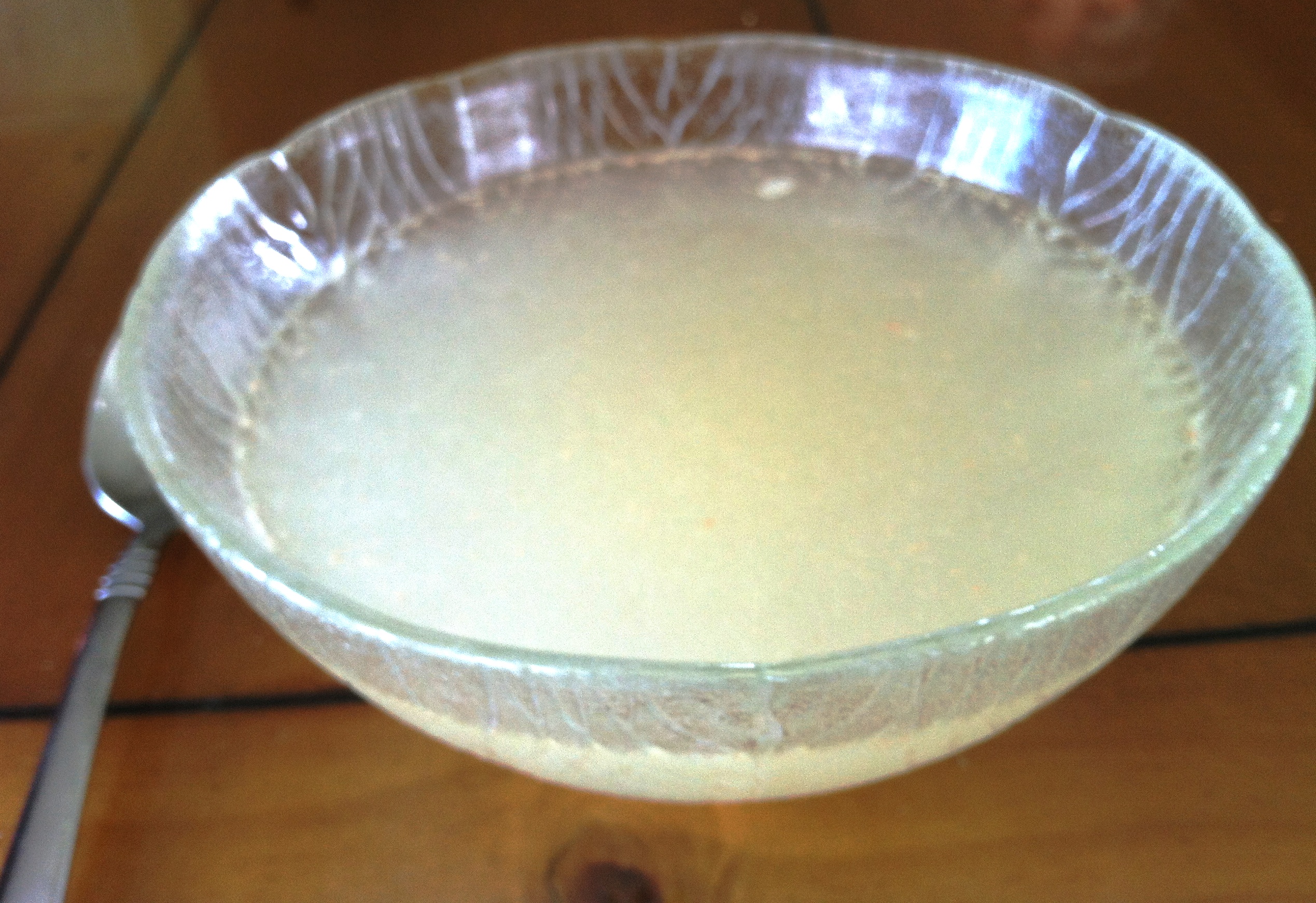 Heat on medium until just under a boil, then lower to a simmer and cover. Let simmer for around 30-40 minutes. Adjust the salt as needed, then strain before serving, making sure you have removed all the bones.