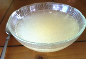 What goes in the pot really depends on what we happen to have with us on vacation. I’ve thrown in carrots, diced tomato, herbs, etc., but the version I made on this trip is Fish Head Soup in all its simple deliciousness–just salt, onion, garlic, and water. Oh, and a fish head, of course.